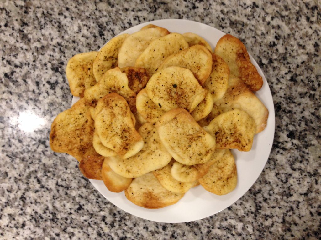 Pinch small, marble sized, pieces of dough from the ball, roll them into rough balls, and using a little flour so they don’t stick roll them out into rough oval shapes. Make sure to roll them as thin as you possibly can.